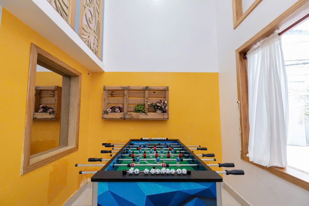 Điểm khiến Sunny Villa - Hoàng Hoa Thám trở nên nổi bật chính là hồ bơi dài 30m kết hợp không gian rộng rãi, hiện đại, mang đến cảm giác vừa thư giãn vừa sôi động cho những kỳ nghỉ đông người. Villa gồm 8 phòng ngủ với sức chứa linh hoạt lên đến 30 khách, phù hợp cho gia đình lớn hoặc nhóm bạn. Khu sinh hoạt chung được đầu tư đầy đủ với bếp, BBQ, bàn ăn ngoài trời, cùng loạt tiện ích giải trí như karaoke, bida, bi lắc và ghế massage. Nội thất tiện nghi, bố trí hợp lý giúp mọi người vừa có không gian riêng tư vừa dễ dàng kết nối. Đây là lựa chọn lý tưởng cho những chuyến đi cần sự thoải mái, vui vẻ và tiện nghi trọn vẹn.