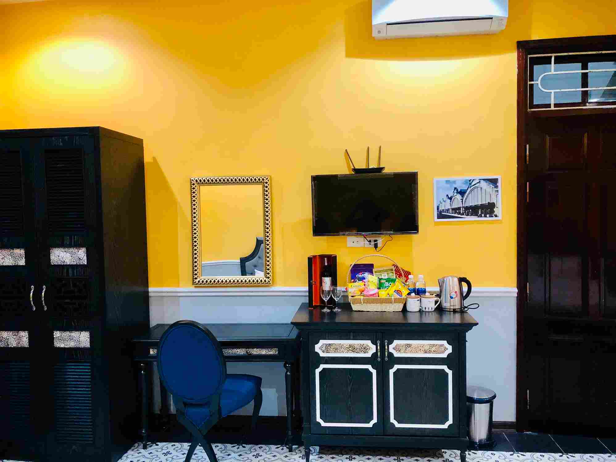 Bên trong Sunset Villa - Phố Hội, mọi tiện ích cần thiết đều đã sẵn sàng: điều hòa hai chiều, wifi mạnh, tivi kết nối Internet, bình nóng lạnh, ấm siêu tốc và đầy đủ bộ dụng cụ bếp. Nhà vệ sinh sạch sẽ, khăn tắm, khăn mặt và bàn chải được chuẩn bị kỹ càng cho từng vị khách. Sự chu đáo từ những chi tiết nhỏ này góp phần nâng tầm trải nghiệm nghỉ dưỡng, giúp bạn không phải lo nghĩ gì ngoài việc tận hưởng kỳ nghỉ.