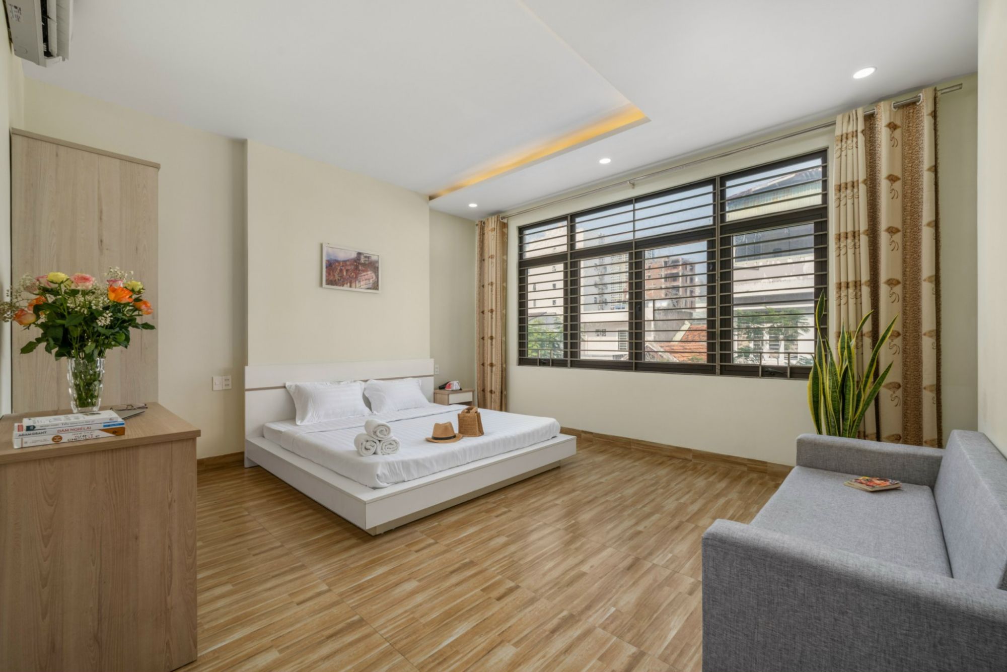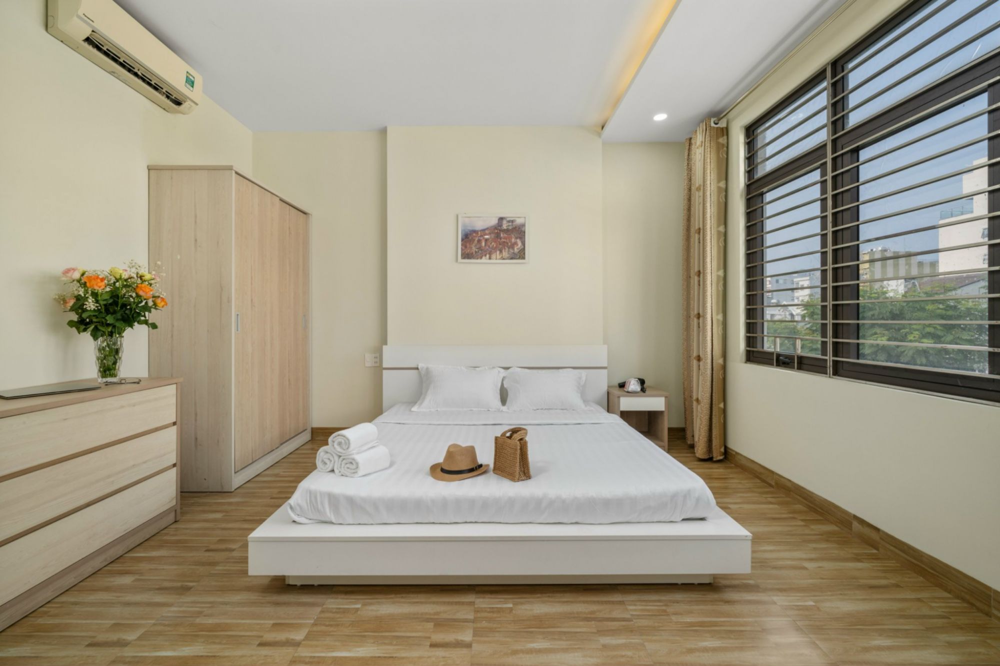 Mỗi phòng ngủ tại Sunshine Villa đều được trang bị đầy đủ tiện nghi như giường lớn, máy lạnh, máy sấy tóc, bàn ghế... Cửa sổ lớn giúp phòng luôn tràn ngập ánh sáng tự nhiên và đón những làn gió mát lành. Với 5 phòng ngủ và 6 nhà vệ sinh, villa có thể đáp ứng nhu cầu của nhóm bạn hoặc gia đình lớn.
