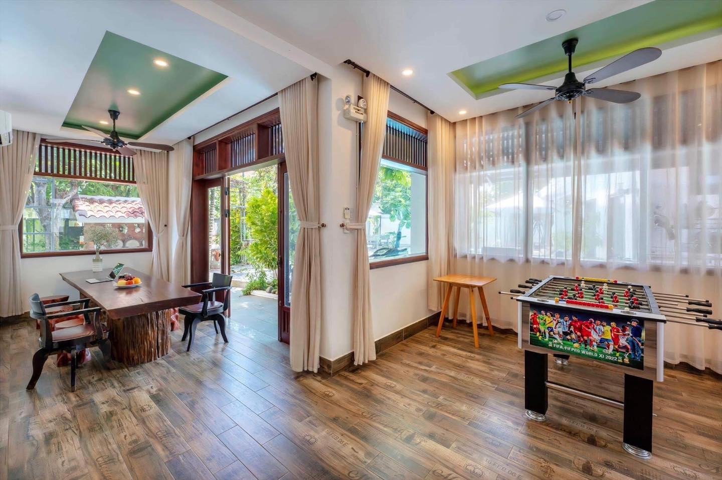 Ngoài hồ bơi, The Country House còn có bàn bi lắc để bạn và hội bạn tranh tài, tạo nên những khoảnh khắc vui vẻ và gắn kết. Đặc biệt, homestay còn cung cấp xe đạp để mọi người có thể thoải mái dạo quanh phố cổ Hội An – khám phá vẻ đẹp cổ kính và văn hóa đặc sắc của thành phố di sản.