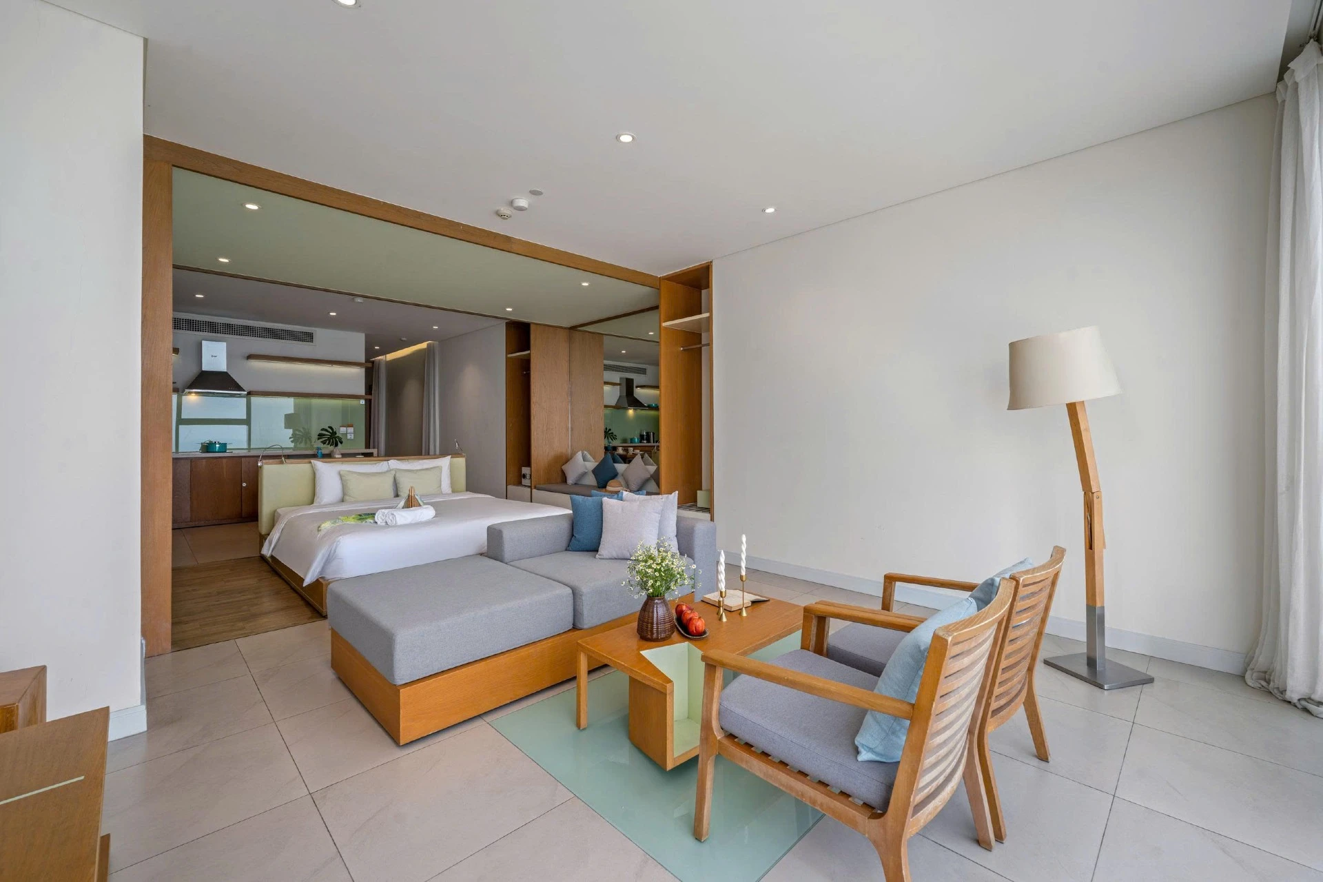 Trải nghiệm tinh hoa của cuộc sống ven biển trong căn Fusion Suite sang trọng — một căn hộ hiện đại, phong cách, đạt chuẩn tiện nghi 4 sao, chỉ cách bãi biển Mỹ Khê vài bước chân.