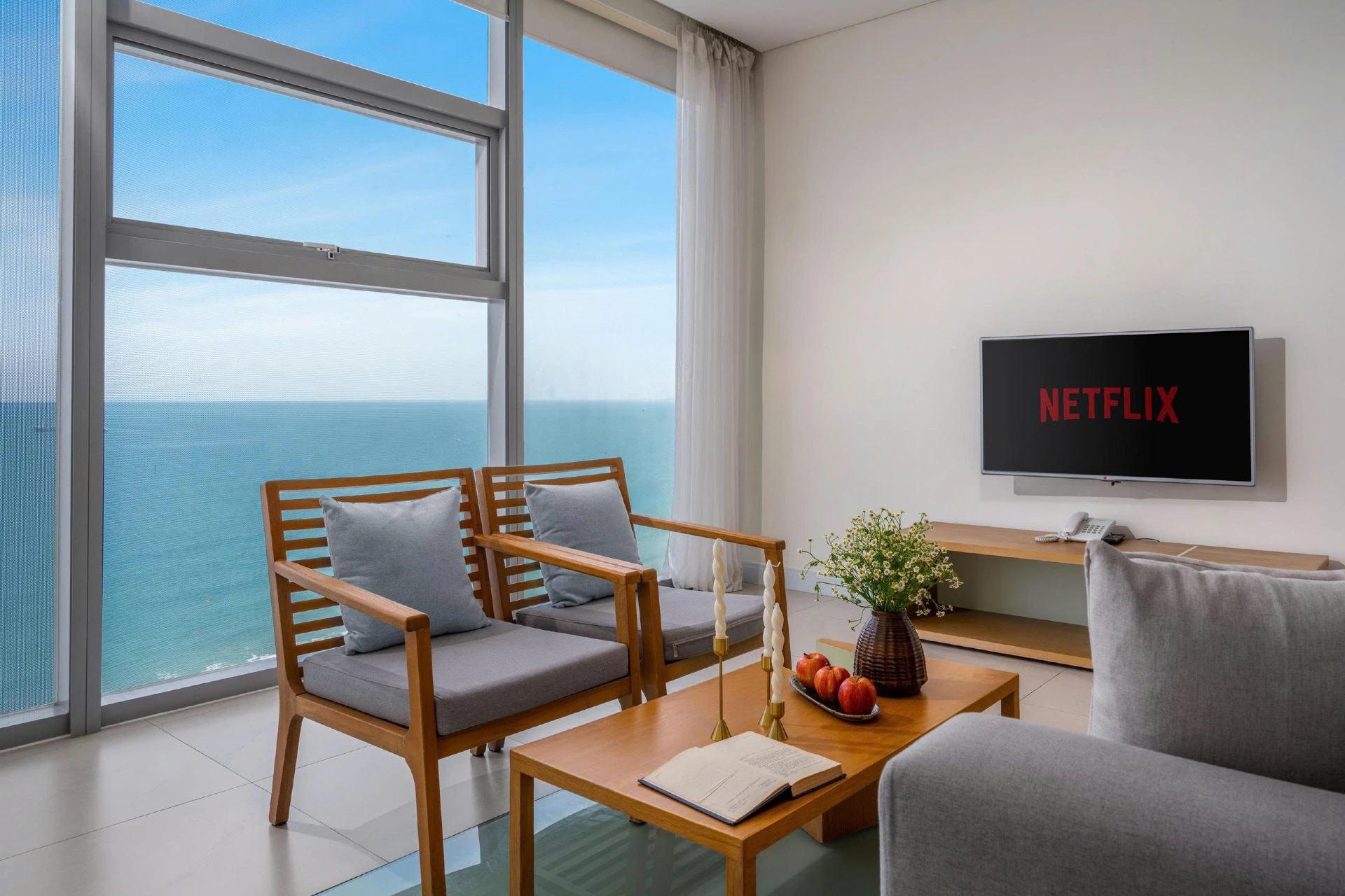 Với đường nét tinh gọn, tông màu ấm áp và khung cảnh biển rộng mở, căn hộ tầng cao trong tòa tháp 22 tầng này mang đến sự hòa quyện hoàn hảo giữa tiện nghi và vẻ đẹp biển xanh.