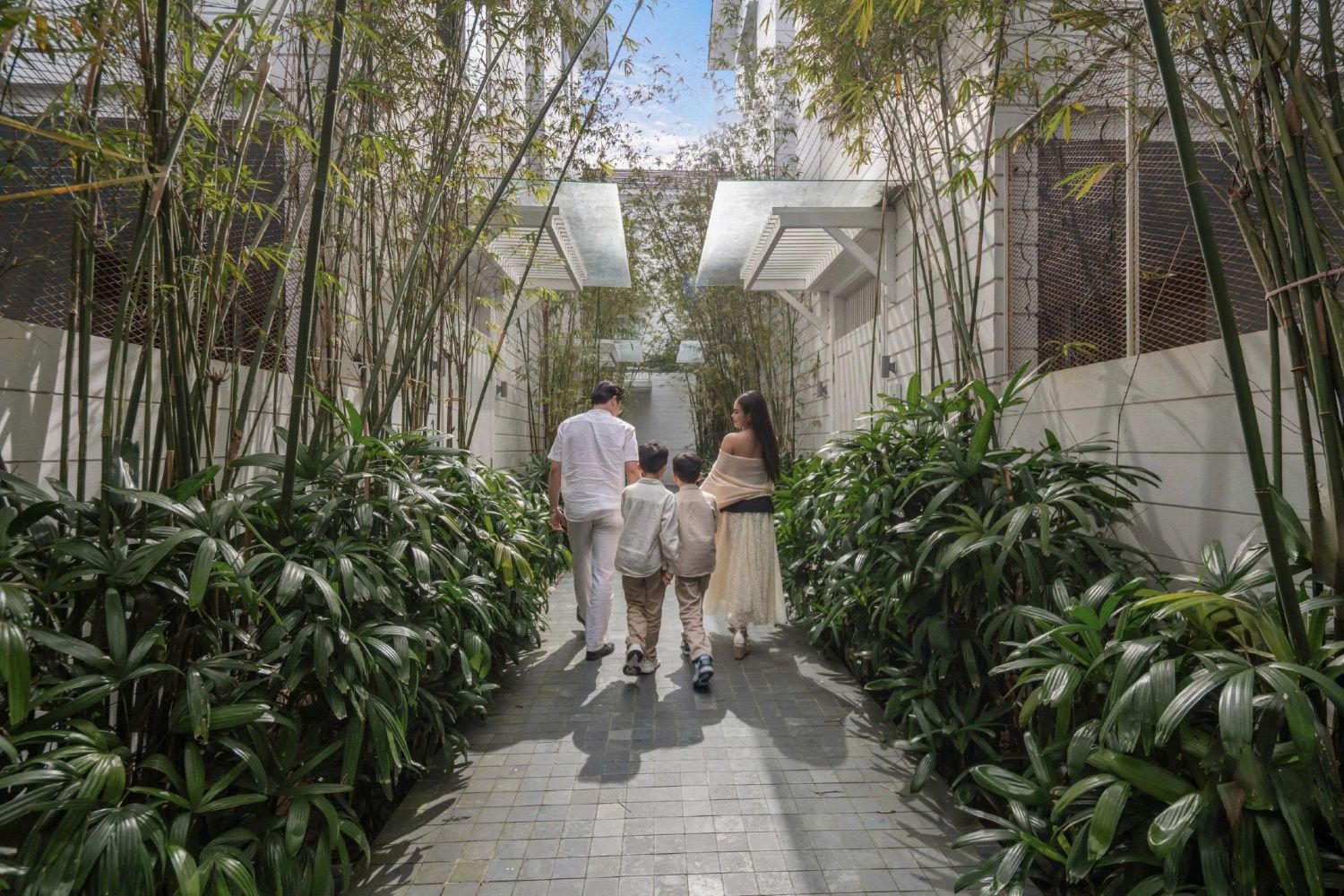 Tầng 2: Phòng master sang trọng với giường king-size, khu vực thay đồ và phòng tắm en-suite cao cấp có bồn tắm. Ban công riêng mở ra không gian sân vườn và không khí trong lành. Phòng yoga dành cho các hoạt động chăm sóc sức khỏe.