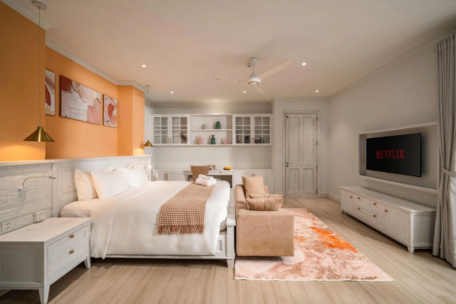 Tọa lạc trong không gian yên bình, villa rộng 250m² được thiết kế lấy cảm hứng từ bờ biển nước Úc, mang đến sự kết hợp hài hòa giữa thiên nhiên và tiện nghi sang trọng. Sắc màu trung tính cùng các chất liệu tự nhiên tạo nên bầu không khí thư giãn tuyệt đối. Villa bao gồm 3 phòng ngủ, 4 phòng tắm, bể bơi riêng, bếp đầy đủ tiện nghi và điều hòa, cùng các thiết bị cao cấp Grohe, đảm bảo mang lại trải nghiệm nghỉ dưỡng đẳng cấp.