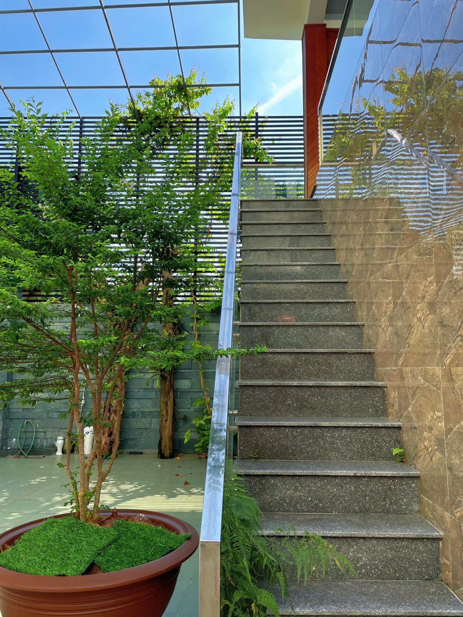 Mọi lối đi, khoảng sân và khu sinh hoạt đều có độ mở, tạo cảm giác dễ thở ngay cả khi villa đón đủ số lượng người ở.