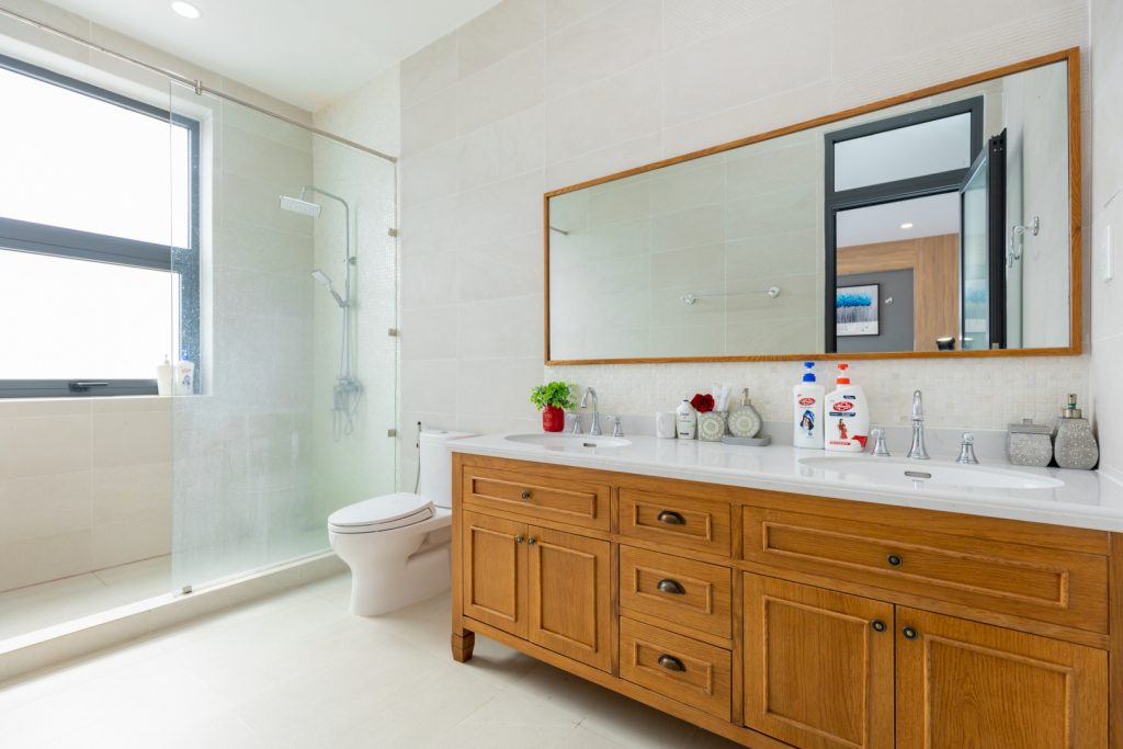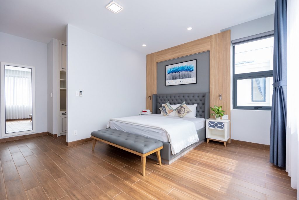 Trần Duy Villa – Seashell được thiết kế hiện đại với tổng cộng 5 phòng ngủ, mỗi phòng đều có giường riêng và nhà vệ sinh khép kín, đảm bảo sự riêng tư và thoải mái cho mọi thành viên trong đoàn. Sức chứa tiêu chuẩn của villa là 15 người lớn, tối đa có thể đón tiếp lên đến 20 người lớn – rất phù hợp cho gia đình nhiều thế hệ, nhóm bạn thân hoặc các đoàn du lịch nghỉ dưỡng.