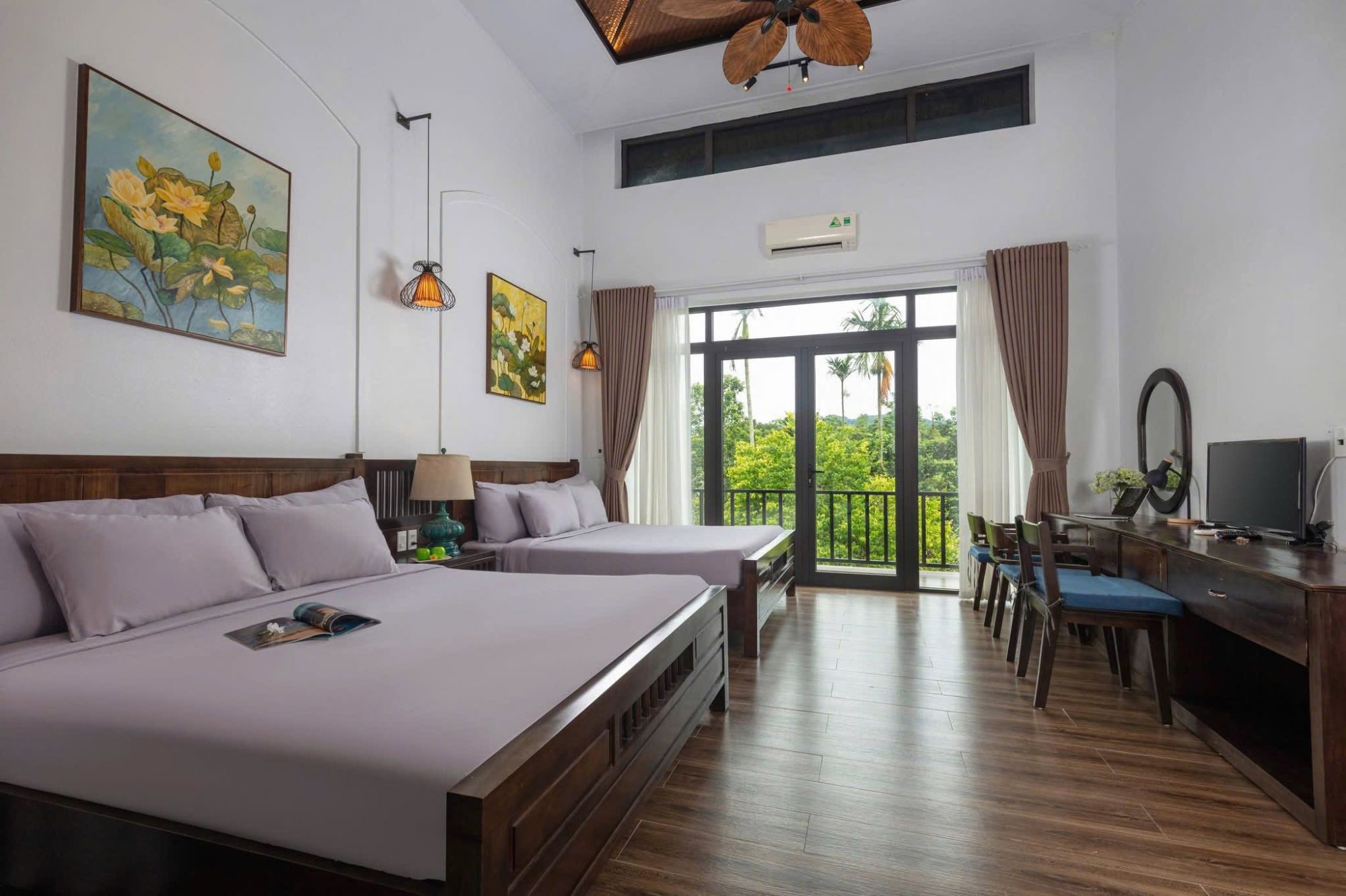 03 Phòng Family (43m²): Mỗi phòng 2 giường 1m8, ban công hướng vườn