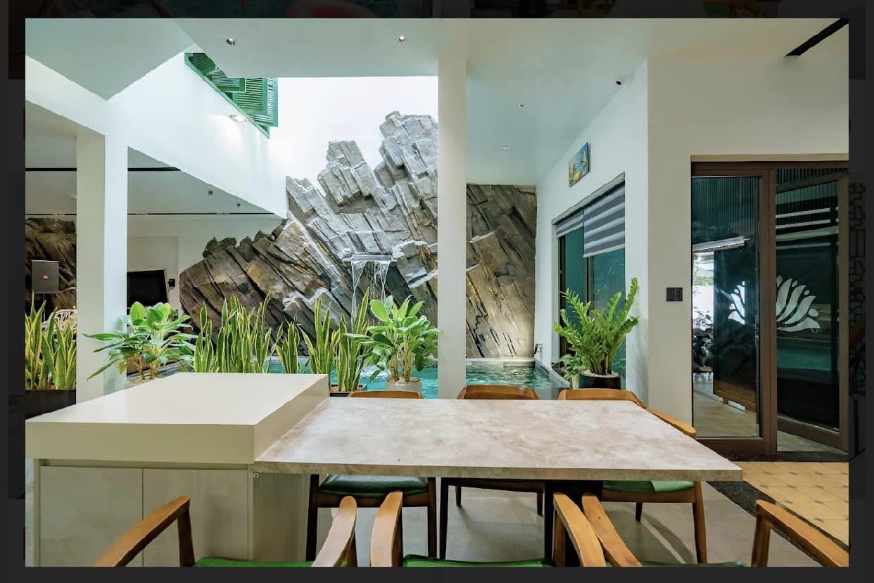 Ấn tượng nổi bật của Victoria Villa là hồ bơi trong nhà kết hợp phong cách cổ điển với gam màu xanh mint dịu mắt, tạo nên không gian vừa thư giãn vừa khác biệt. Không khí nơi đây mang lại cảm giác nhẹ nhàng nhưng vẫn đủ tiện nghi, rất phù hợp cho những chuyến đi gia đình hoặc nhóm bạn.