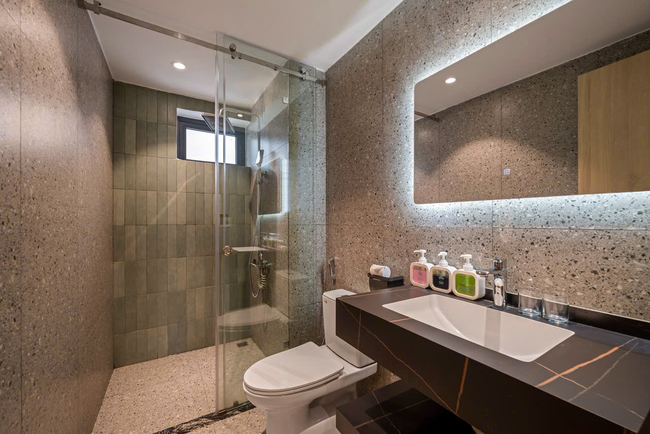 Phòng khách rộng rãi là không gian sinh hoạt chung lý tưởng, thuận tiện cho việc trò chuyện, giải trí và gắn kết các thành viên. Bên ngoài là hồ bơi ngoài trời riêng tư, không gian cực chill để thư giãn, vui chơi hay tổ chức những buổi tiệc nhẹ trong không khí thoáng mát.