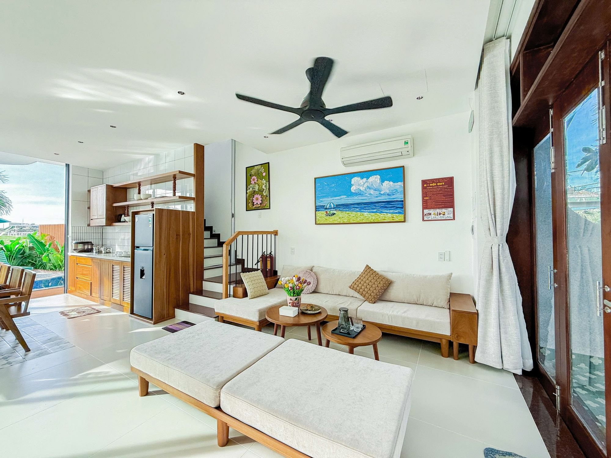 Villa mang đến sự cân bằng hoàn hảo giữa không gian yên tĩnh và khả năng kết nối với các hoạt động vui chơi, ẩm thực xung quanh. Việc di chuyển ra biển vô cùng thuận tiện, giúp kỳ nghỉ luôn trọn vẹn với những buổi sáng dạo biển, chiều thư giãn bên hồ bơi và tối quây quần trong không gian riêng của villa.