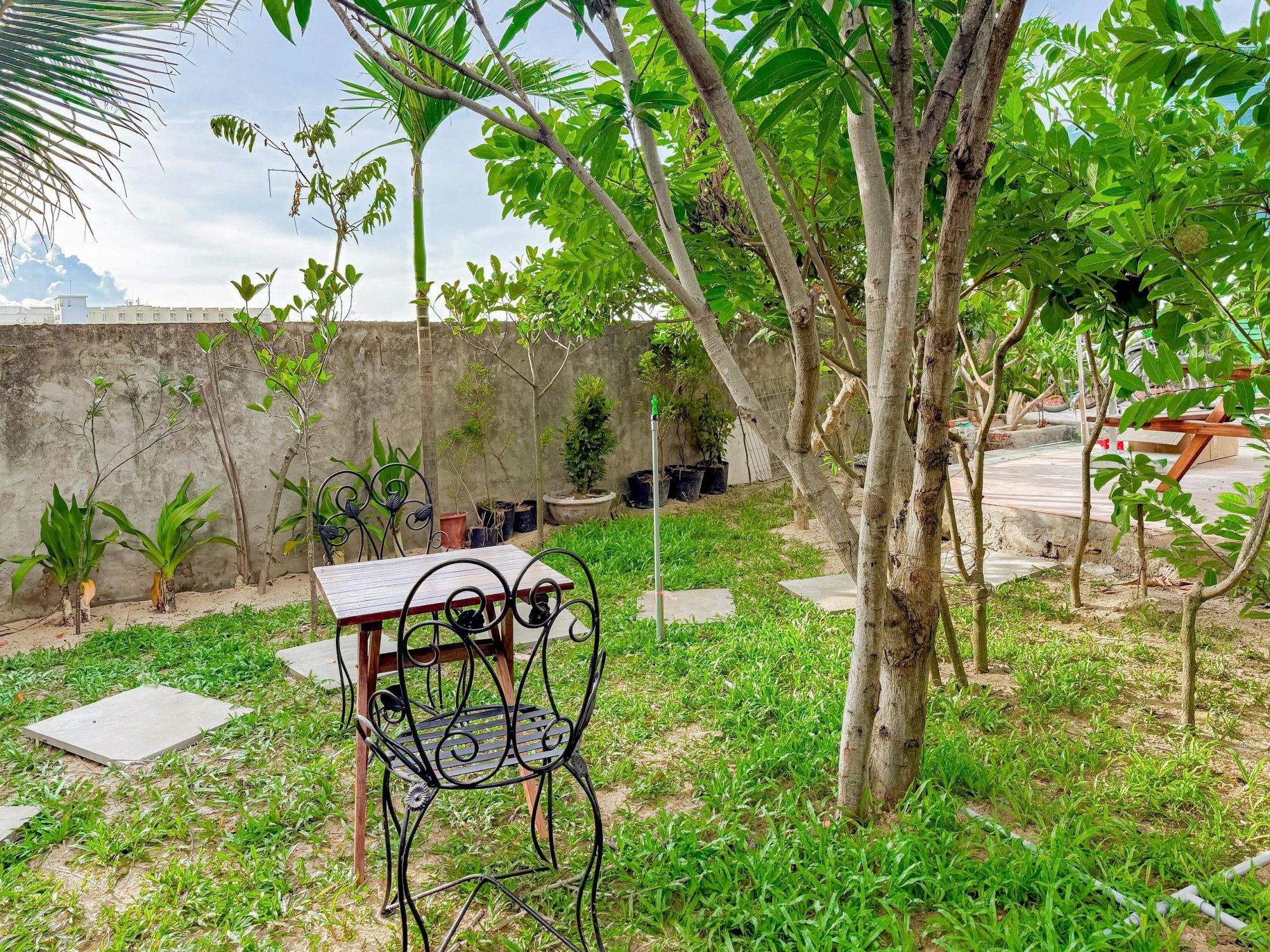 Một trong những điểm nhấn nổi bật của villa chính là hồ bơi riêng kết hợp cùng khu sân vườn xanh mát. Không gian ngoài trời được chăm chút kỹ lưỡng, mang đến cảm giác thư thái, trong lành. Đây là nơi thích hợp để ngâm mình thư giãn, đọc sách, tận hưởng nắng gió hay tổ chức những buổi tiệc BBQ ấm cúng trong không khí gần gũi và riêng tư.