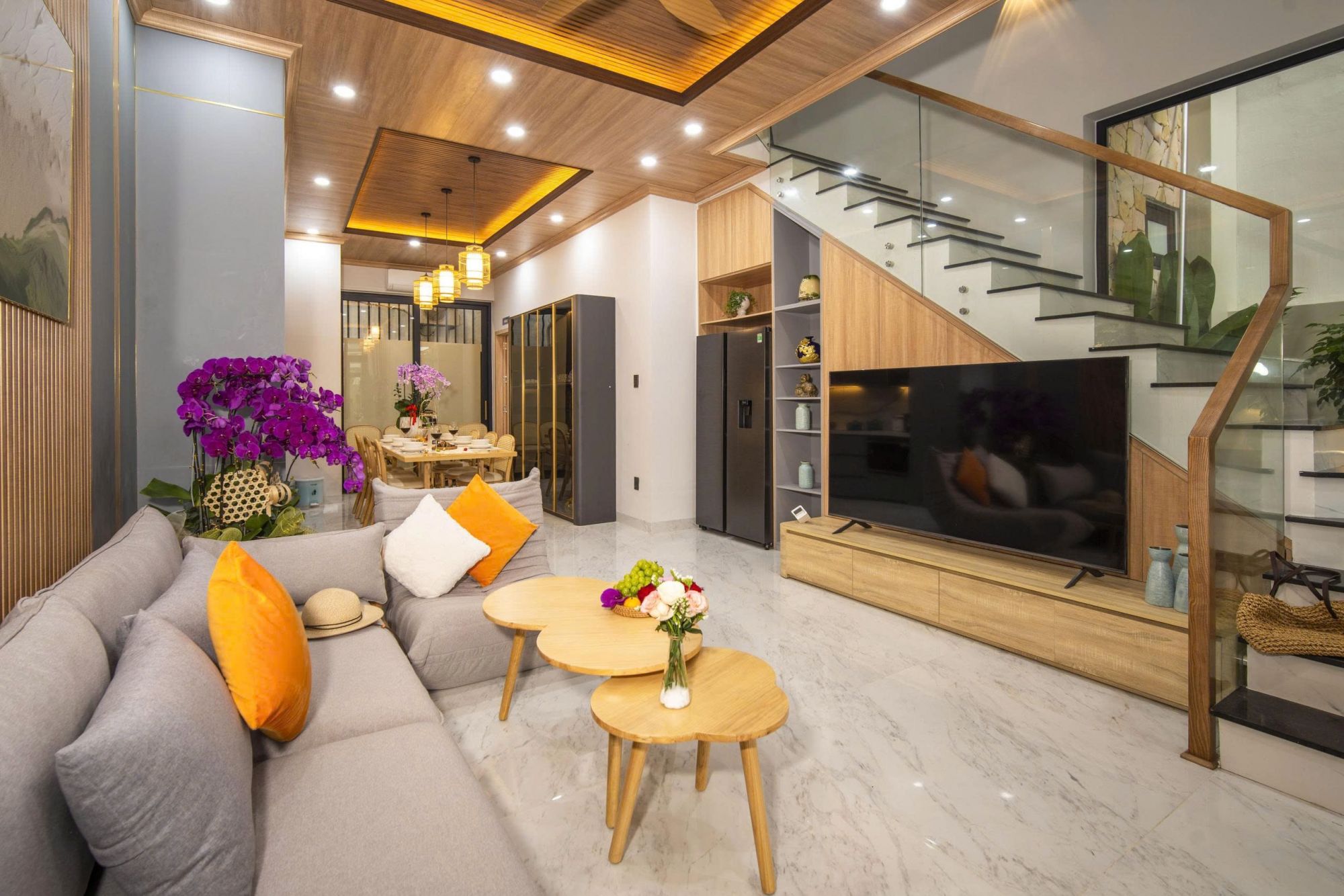 Thiết kế của Villa D’tran Da Nang hướng đến sự cân bằng giữa thẩm mỹ và công năng sử dụng. Các không gian sinh hoạt chung được bố trí rộng rãi, thoáng đãng, tạo cảm giác dễ chịu ngay từ khi bước vào. Ánh sáng tự nhiên được tận dụng hợp lý, kết hợp cùng gam màu trung tính giúp tổng thể villa luôn nhẹ nhàng, sang trọng nhưng không phô trương.