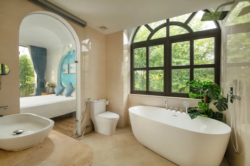 Điểm nhấn của Villa E3.16 Venus chính là bể bơi riêng xanh mát, nơi du khách có thể thoải mái thư giãn giữa không gian yên tĩnh. Phòng khách rộng rãi kết hợp với khu bếp tiện nghi, đầy đủ dụng cụ nấu ăn, giúp các bữa tiệc gia đình hoặc BBQ ngoài trời trở nên trọn vẹn.