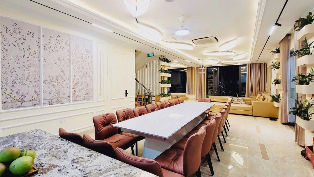 Nội thất của villa sử dụng tone màu trắng – xám – kem chủ đạo, tạo nên cảm giác ấm cúng nhưng vẫn giữ được nét hiện đại đặc trưng. Căn góc 2 mặt tiền ven hồ Điều Hòa FLC giúp mọi không gian đều ngập tràn ánh sáng tự nhiên. Mỗi chi tiết trong villa – từ sofa, bàn ăn đến hệ thống chiếu sáng – đều được chọn lựa kỹ lưỡng, mang lại trải nghiệm sống tinh tế và thoải mái cho du khách.