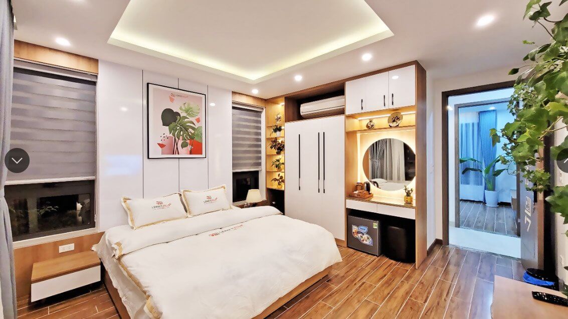 Villa được bố trí khoa học với 9 phòng ngủ cùng đầy đủ tiện ích hiện đại. Tầng 1 là khu sinh hoạt chung với phòng khách rộng, dàn karaoke cao cấp, Smart TV và bộ sofa êm ái; bên cạnh là phòng bếp mở, tủ lạnh và bàn ăn lớn, rất phù hợp cho những buổi sum họp ấm cúng. Các tầng trên được sắp xếp linh hoạt, có nhiều loại giường khác nhau, phù hợp cho nhóm bạn hoặc đại gia đình đi nghỉ dưỡng. Mỗi phòng đều có điều hòa, TV, wifi và đầy đủ vật dụng cá nhân, đảm bảo sự tiện lợi tối đa cho du khách.