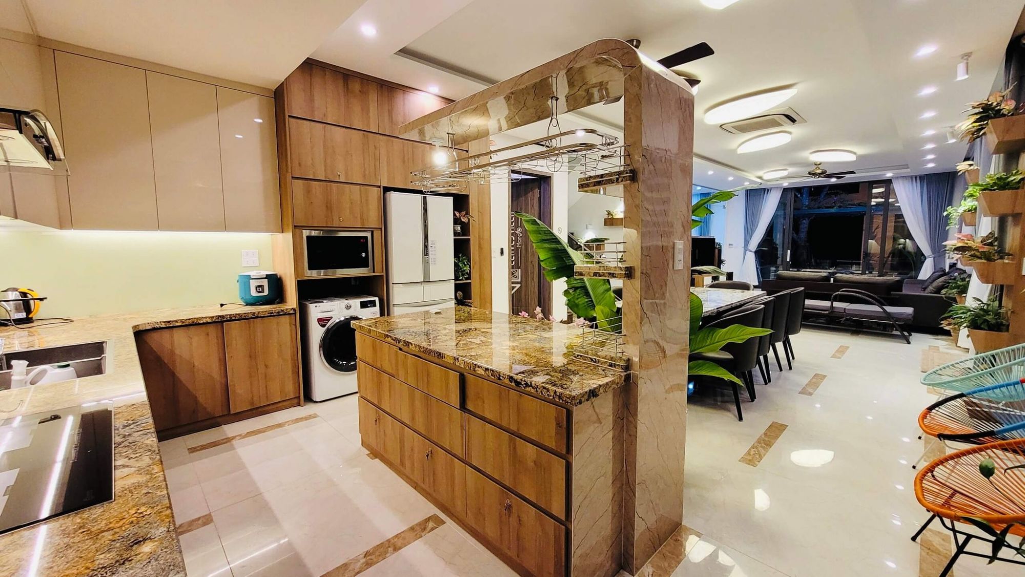 Sở hữu diện tích 230m² cùng vị trí 2 mặt tiền ven hồ Điều Hòa thơ mộng, căn villa gây ấn tượng mạnh ngay từ ánh nhìn đầu tiên. Không gian sống được trang trí bằng nhiều mảng xanh xen kẽ, kết hợp cùng gam màu gỗ trầm ấm, tạo cảm giác vừa sang trọng vừa gần gũi. Mỗi căn phòng đều mang nét riêng, nhưng cùng hướng đến một tinh thần chung: thư thái, tự nhiên và đầy năng lượng tích cực.