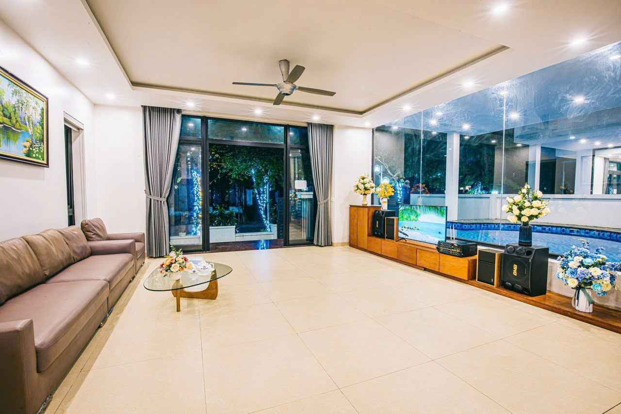 Villa FLC Sầm Sơn KT03-05 được thiết kế 3 tầng, gồm 8 phòng ngủ vệ sinh khép kín, tổng cộng 11 giường lớn và sức chứa tối đa lên đến 27 người bao gồm cả người lớn và trẻ em. Mỗi phòng đều trang bị smart TV, wifi, điều hòa, nóng lạnh, quạt và đầy đủ tiện nghi sinh hoạt. Không gian phòng khách ở tầng 1 rộng rãi, hiện đại, có sẵn dàn karaoke để cả đoàn cùng nhau ca hát, thư giãn.