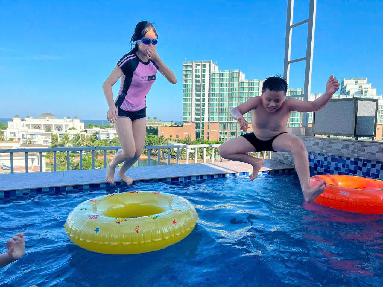 Điểm đặc biệt giúp Villa FLC Sầm Sơn – LK25 trở thành lựa chọn nổi bật chính là sự kết hợp giữa sự sang trọng và giải trí tiện lợi. Thang máy hoạt động 24/24 hỗ trợ di chuyển thuận tiện giữa các tầng. Hệ thống karaoke với âm thanh chất lượng giúp các thành viên thoải mái vui chơi. Bể bơi vô cực tầng thượng rộng 40m² mở ra khung cảnh hướng về biển và hồ, là nơi lý tưởng để thư giãn, ngắm hoàng hôn hoặc tận hưởng những khoảnh khắc chill bên cạnh người thân. Ngoài ra, xe đạp miễn phí trong khu FLC mang đến trải nghiệm khám phá nhẹ nhàng, còn bãi đậu xe rộng rãi giúp việc di chuyển trở nên dễ dàng hơn.