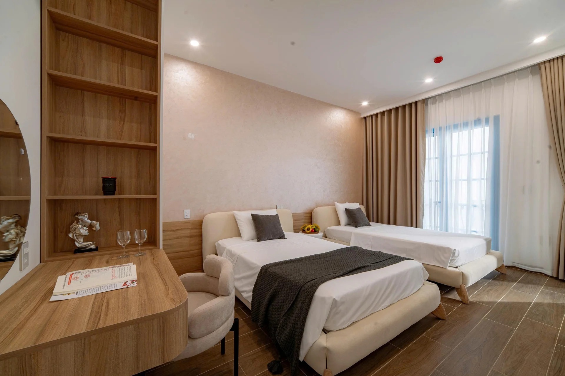 Villa Hạ Long – Sun Feria C519 sở hữu 6 phòng ngủ rộng rãi, đáp ứng tiêu chuẩn lưu trú cho khoảng 14 người lớn và linh hoạt cho nhóm đông hơn. Mỗi phòng đều được thiết kế khép kín, có ban công riêng, mang lại sự riêng tư cần thiết cho từng thành viên trong đoàn. Cách bố trí phòng hợp lý giúp không gian nghỉ ngơi luôn yên tĩnh, phù hợp cho cả gia đình nhiều thế hệ lẫn nhóm bạn đi nghỉ dưỡng dài ngày.