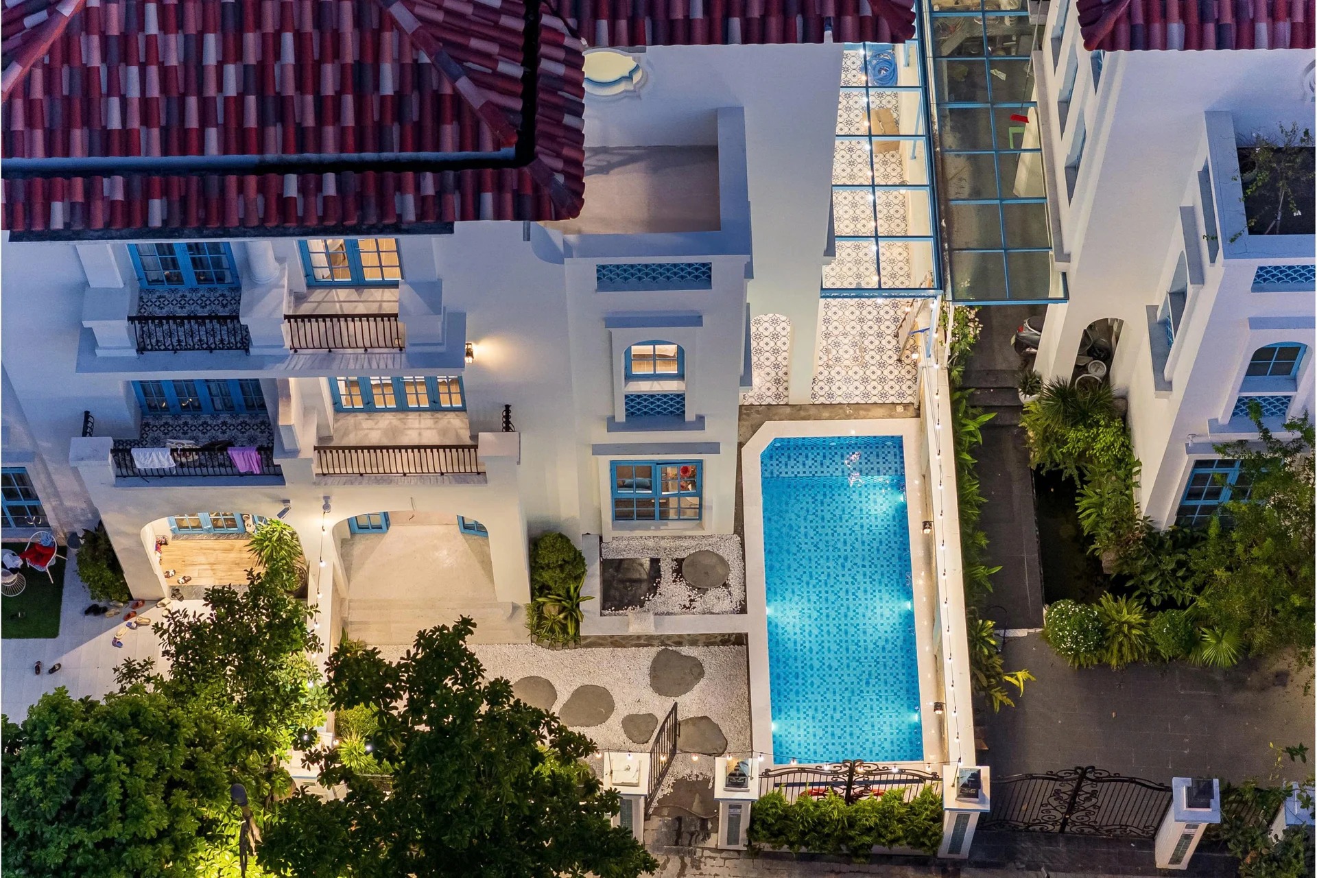 Villa gây ấn tượng với phong cách Địa Trung Hải sang trọng ở mặt ngoài, kết hợp hài hòa cùng nội thất hiện đại bên trong. Các mảng kính lớn được bố trí xuyên suốt giúp ánh sáng tự nhiên và gió biển lan tỏa khắp không gian, tạo nên cảm giác thoáng đãng và dễ chịu. Tổng thể thiết kế vừa mang tính thẩm mỹ cao, vừa hướng đến trải nghiệm nghỉ dưỡng thư giãn và tinh tế.