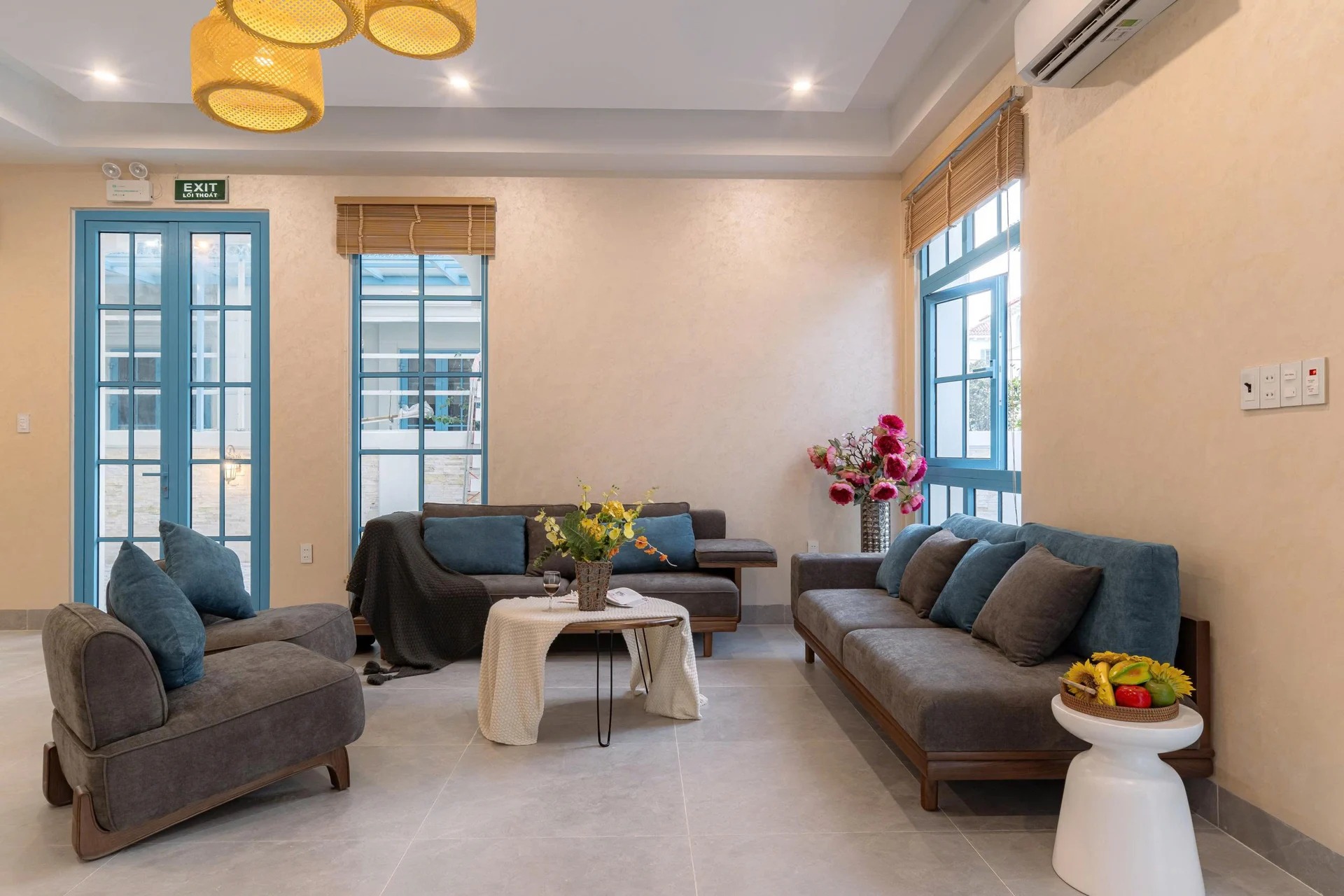 Với diện tích sử dụng khoảng 250m², villa mang lại sự thoải mái cho nhóm từ 10 đến 30 người. Không gian sinh hoạt chung được trang bị hệ thống giải trí phù hợp cho các buổi sum họp, giúp kỳ nghỉ thêm phần sôi động khi cần và yên tĩnh khi muốn nghỉ ngơi. Việc nấu nướng và tổ chức BBQ trong khuôn viên được cho phép linh hoạt, tạo cảm giác chủ động và gần gũi như ở nhà.