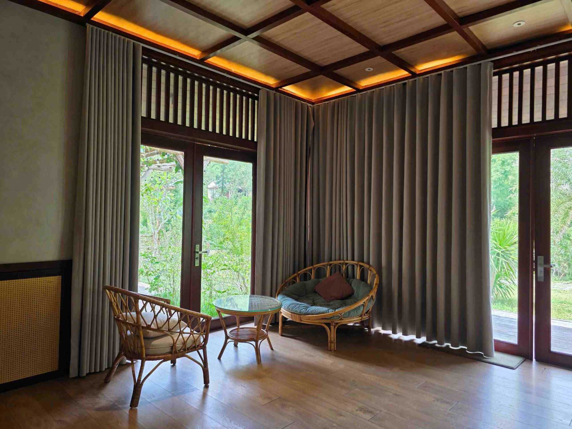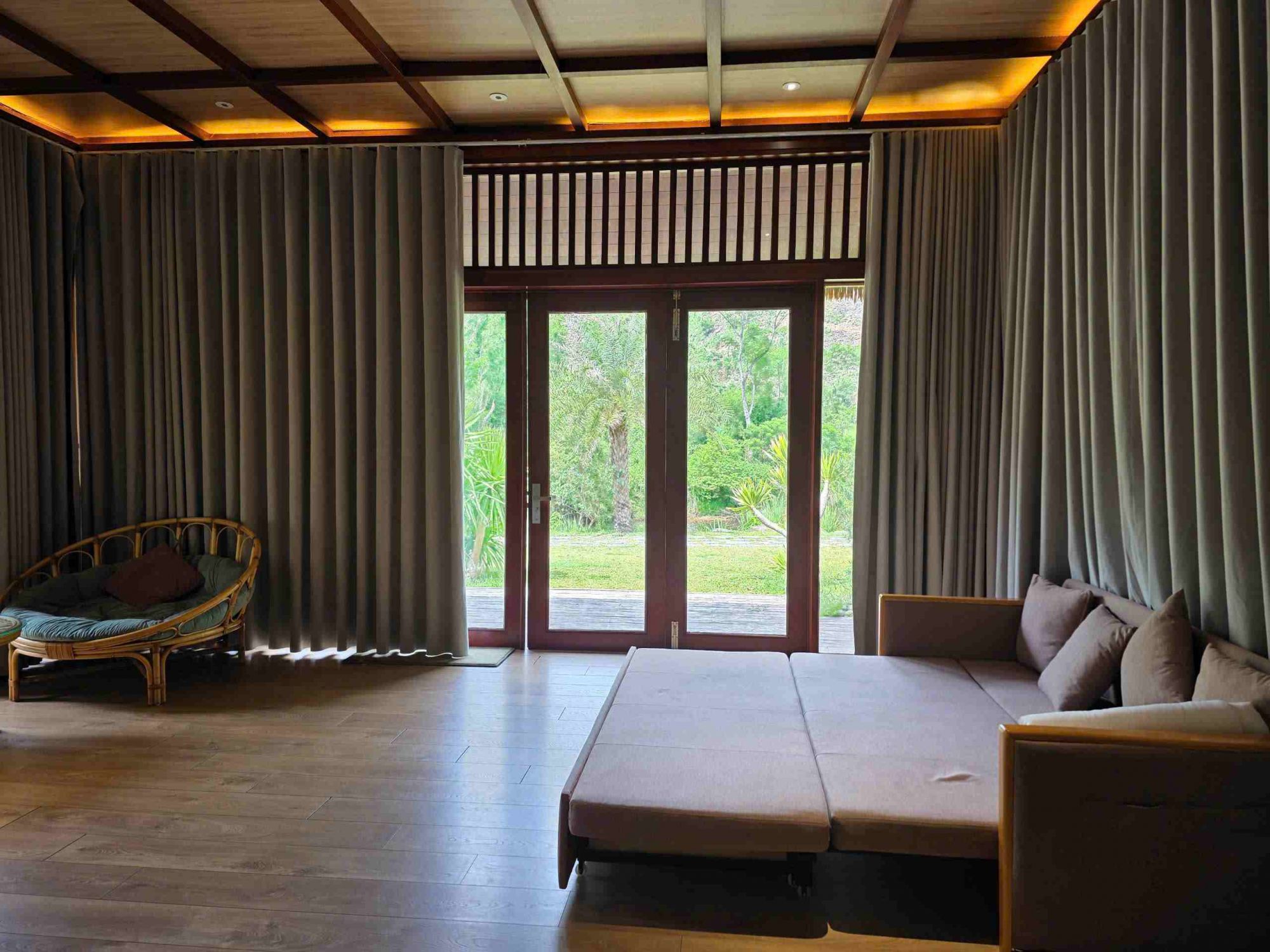 Orchid Villa sở hữu kiến trúc hiện đại nhưng vẫn giữ được sự gần gũi với thiên nhiên. Thiết kế mở với nhiều ô cửa rộng, nội thất tinh tế và tông màu nhẹ nhàng khiến mỗi căn phòng đều toát lên sự thư thái. Dù ngồi trong phòng khách hay thư giãn bên ban công, du khách đều có thể cảm nhận được sự giao hòa giữa con người và thiên nhiên.