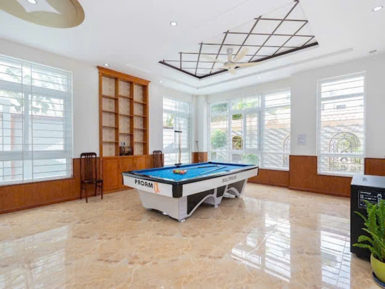 Không chỉ có hồ bơi mát lạnh với diện tích lên đến 100m², villa còn trang bị bàn bida, dàn karaoke hiện đại, tạo không gian sinh hoạt chung đầy sôi động. Tất cả được bố trí hợp lý để khách vừa vui chơi, vừa thư giãn trong suốt kỳ nghỉ.