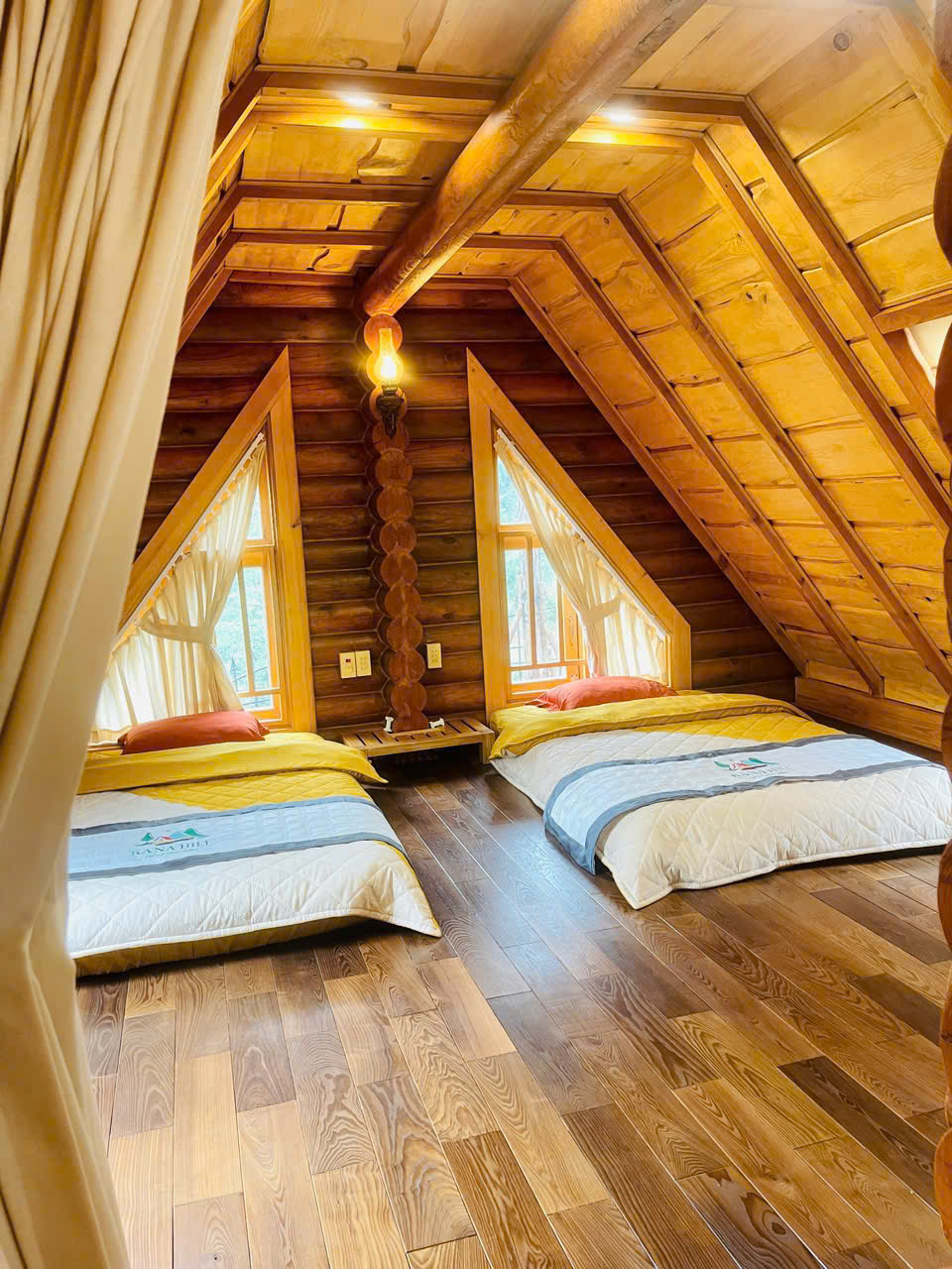 Nhà gỗ châu Âu MonHill là lựa chọn lý tưởng cho những ai muốn tìm một nơi nghỉ dưỡng thật khác biệt giữa thiên nhiên. Với tiêu chuẩn đón 6 người lớn và 3 trẻ em dưới 6 tuổi, MonHill đáp ứng tốt cả nhu cầu của nhóm bạn lẫn gia đình tìm một kỳ nghỉ ấm cúng, riêng tư. Đúng như tên gọi Moon Hill – Đồi Mặt Trăng, căn nhà lúc nào cũng mang đến cảm giác như trăng đang treo lơ lửng ngay trên nóc. Vào những đêm trăng rằm, chỉ cần nằm yên trong nhà, ngước mắt qua khung cửa kính trên mái là có thể ngắm trọn vẻ đẹp tròn đầy của ánh trăng, một trải nghiệm rất riêng và khó quên.