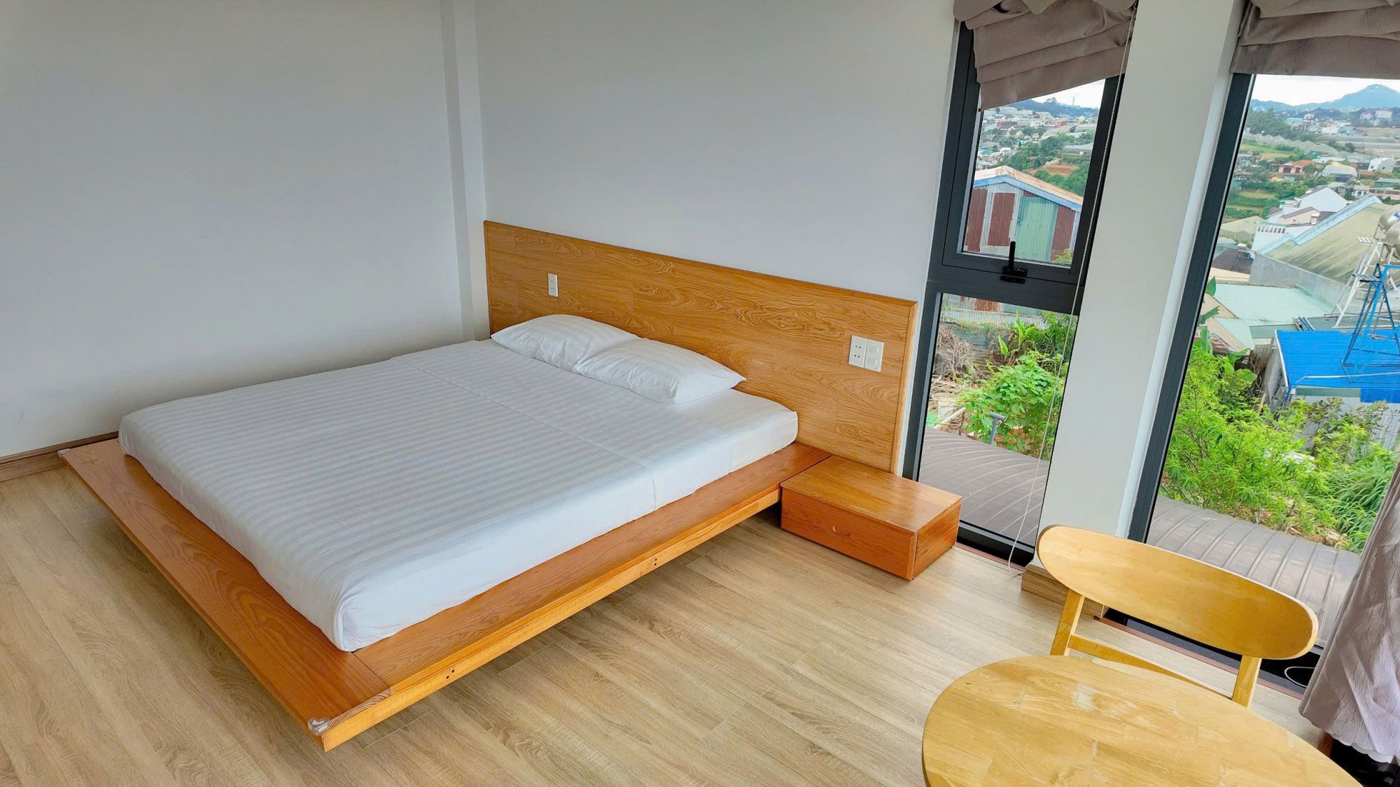 Bên trong villa, các phòng nghỉ được bố trí hợp lý, đầy đủ tiện nghi cần thiết để mang lại sự thoải mái cho du khách. Tất cả các phòng đều có view hướng ra không gian xanh bên ngoài, giúp bạn dễ dàng tận hưởng ánh nắng ban mai, sương sớm hay khung cảnh chiều tà yên bình ngay từ trong phòng. Thiết kế không gian hướng đến sự tiện nghi nhưng vẫn giữ được cảm giác gần gũi, thư giãn.
