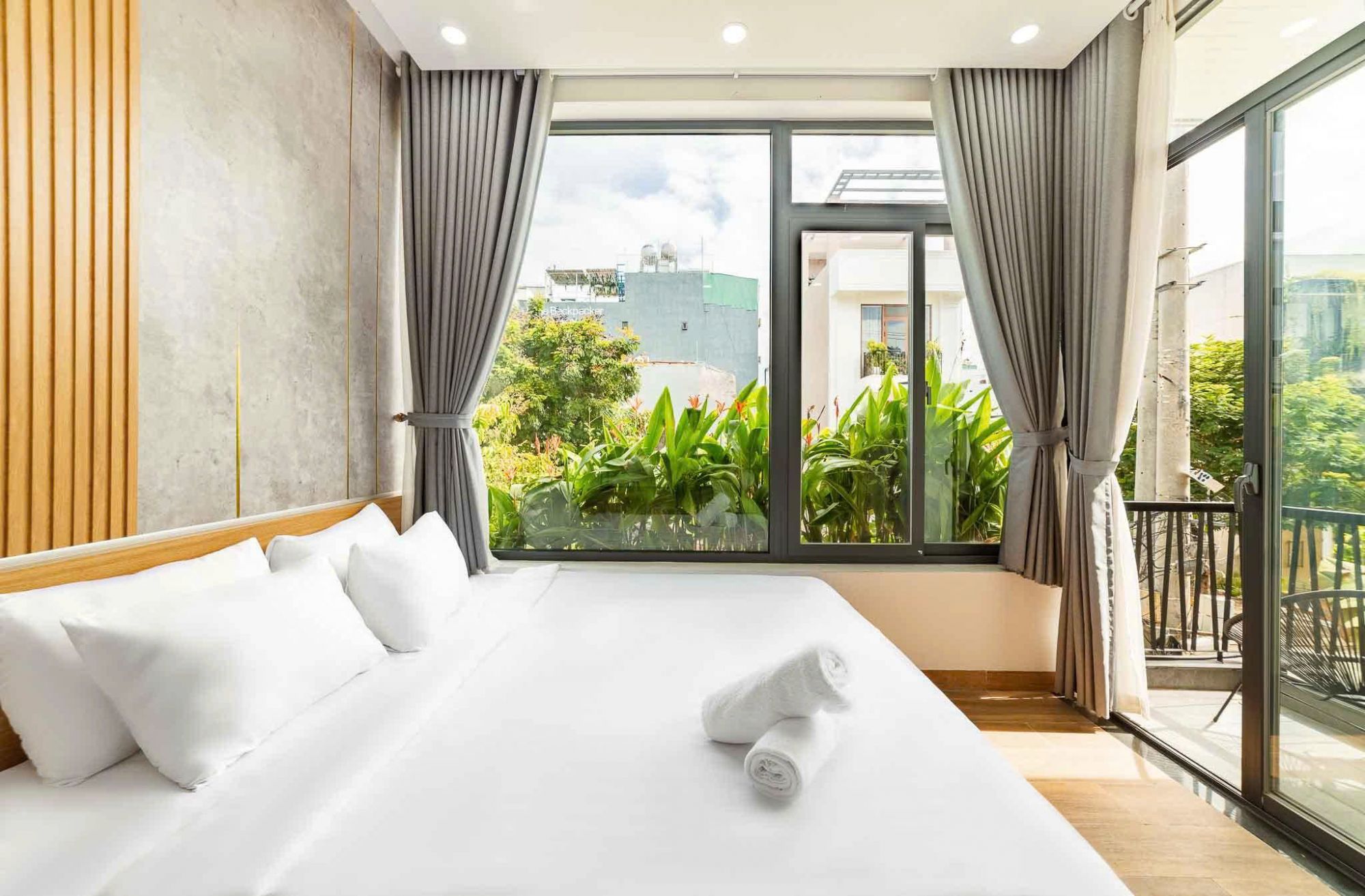 Không gian ban công nhiều cây xanh cùng các góc ngồi thư giãn tạo nên những khoảnh khắc chill đúng nghĩa. Vị trí thuận tiện giúp dễ dàng di chuyển ra biển Mỹ Khê và các điểm vui chơi nổi bật.