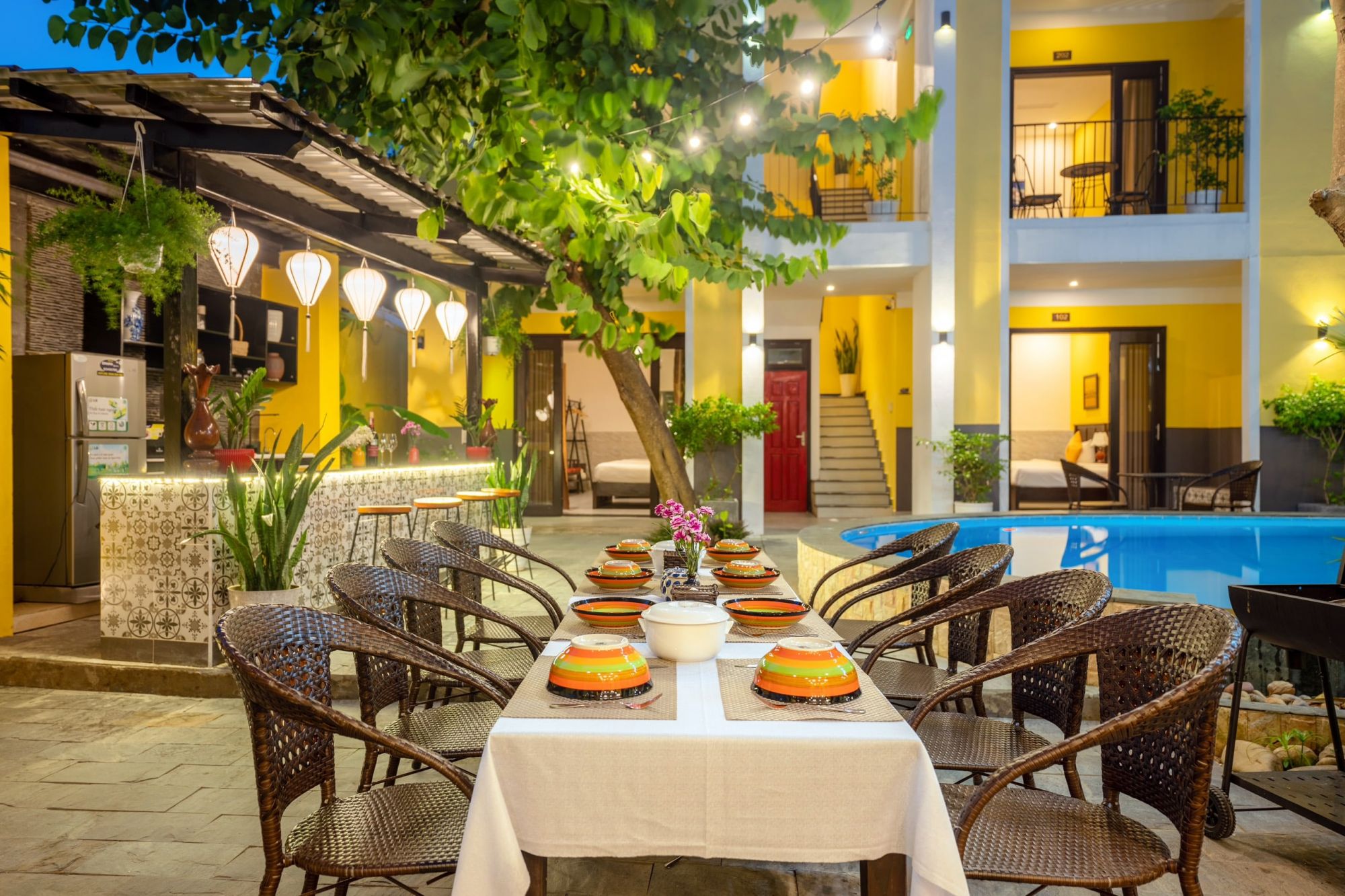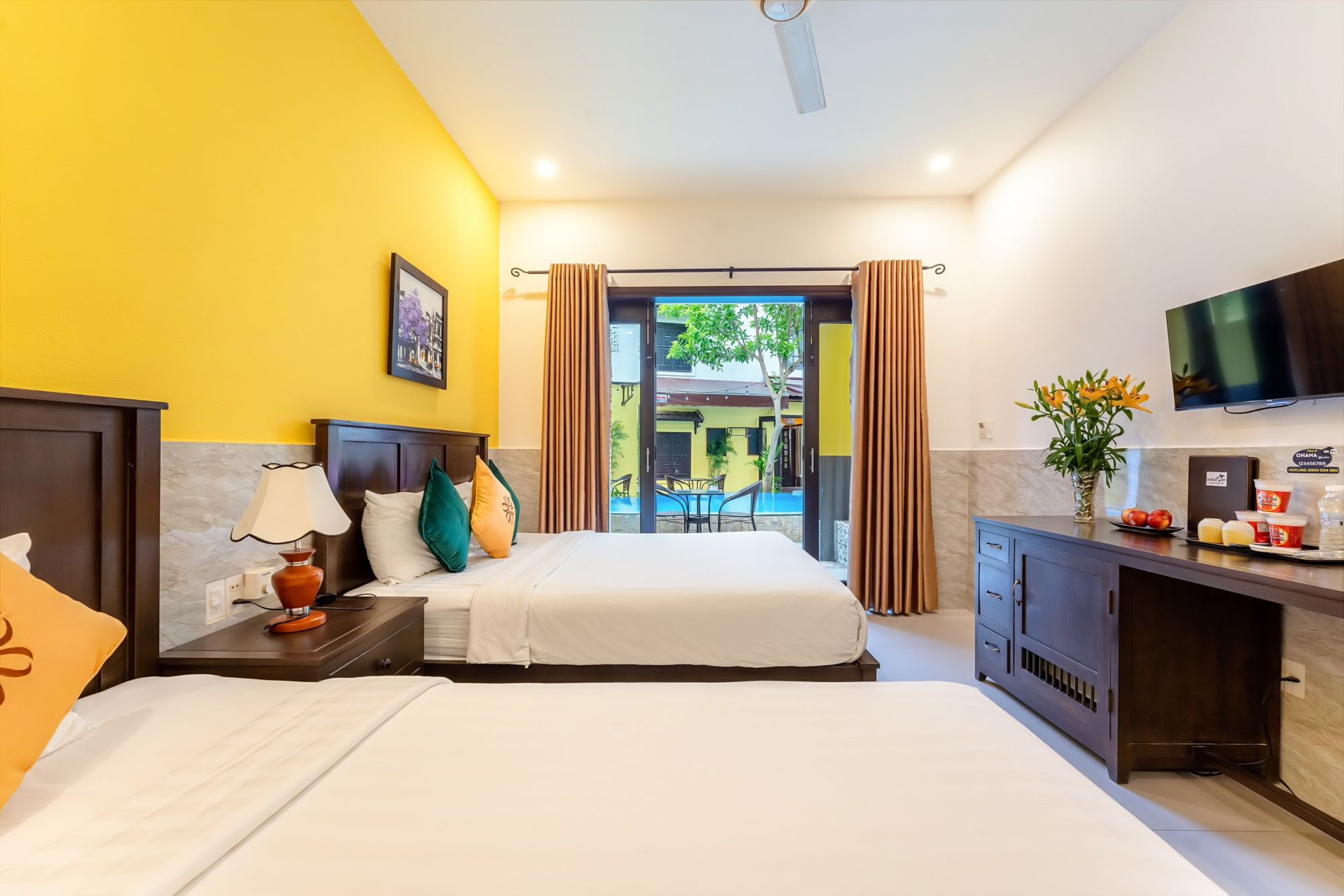 Villa Ohana Garden được xây dựng với sự chăm chút tỉ mỉ trong từng chi tiết. Với tone màu vàng đặc trưng Hội An, những họa tiết trang trí mang đậm nét văn hóa địa phương, tất cả đều góp phần tạo nên một không gian sống sang trọng và gần gũi với thiên nhiên. Mỗi phòng nghỉ đều có cửa sổ lớn, ban công hoặc sân hiên riêng, mang đến tầm nhìn tuyệt đẹp ra hồ bơi ngoài trời.