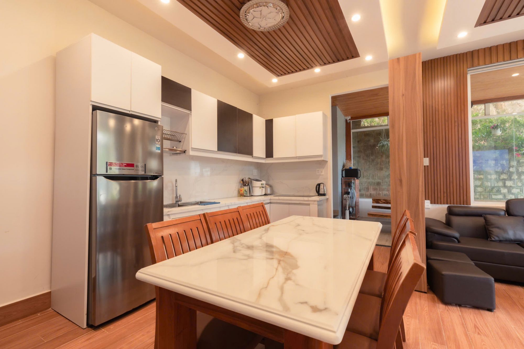 Villa còn trang bị loa hát miễn phí tại phòng khách, giúp mọi người có những phút giây giải trí vui vẻ. Đặc biệt, từ khu vườn có lối đi riêng dẫn thẳng lên rừng thông, nơi bạn có thể dạo bộ, hít thở không khí trong lành và săn mây vào buổi sáng sớm, tận hưởng trọn vẹn vẻ đẹp thiên nhiên đặc trưng của Đà Lạt.