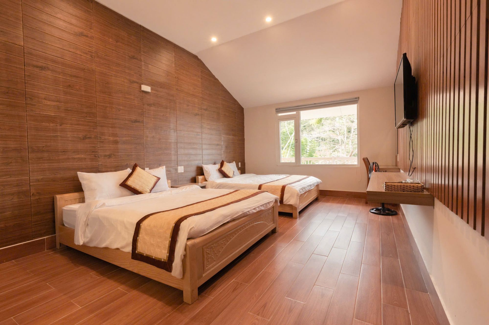 Villa Rừng Thông là lựa chọn lý tưởng cho nhóm bạn hoặc gia đình muốn tận hưởng không gian nghỉ dưỡng yên tĩnh, gần gũi với thiên nhiên. Villa có kết cấu 1 trệt 1 lầu, được bố trí rộng rãi và tiện nghi, gồm 2 phòng đơn, 2 phòng đôi với tổng cộng 5 WC, đảm bảo sự thoải mái cho nhiều khách lưu trú cùng lúc.