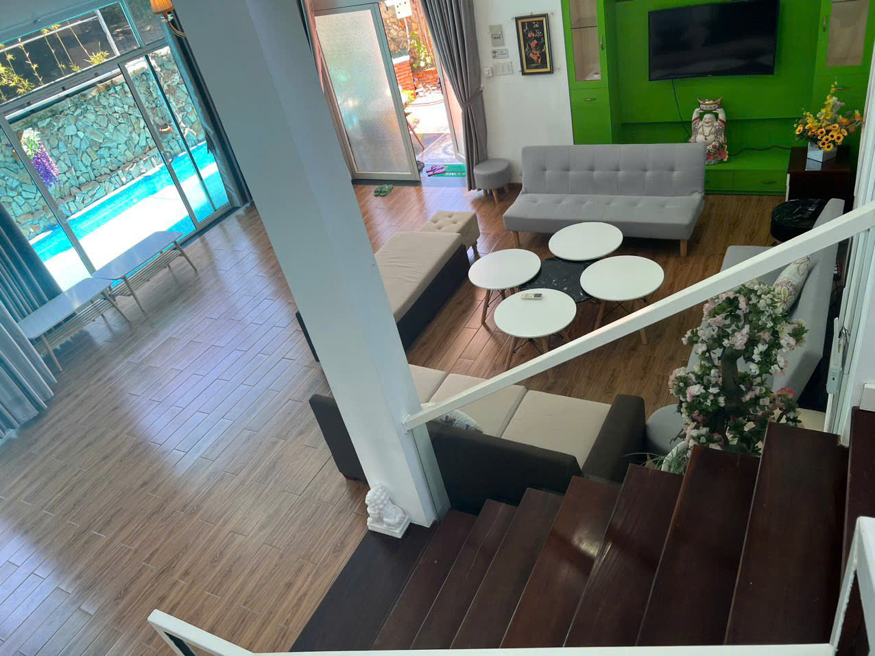 Ngay trong khuôn viên villa là hồ bơi riêng – một điểm nhấn cho mọi chuyến đi. Dù là buổi sáng nắng nhẹ hay chiều muộn chạng vạng, cảm giác ngâm mình trong làn nước mát rồi ngước lên là bầu trời trong xanh hay ánh hoàng hôn dịu nhẹ đều khiến tâm trí được "reset" hoàn toàn. Mỗi phòng ngủ trên tầng lầu đều có ban công – nơi lý tưởng để ngắm phố biển yên bình khi đêm xuống.